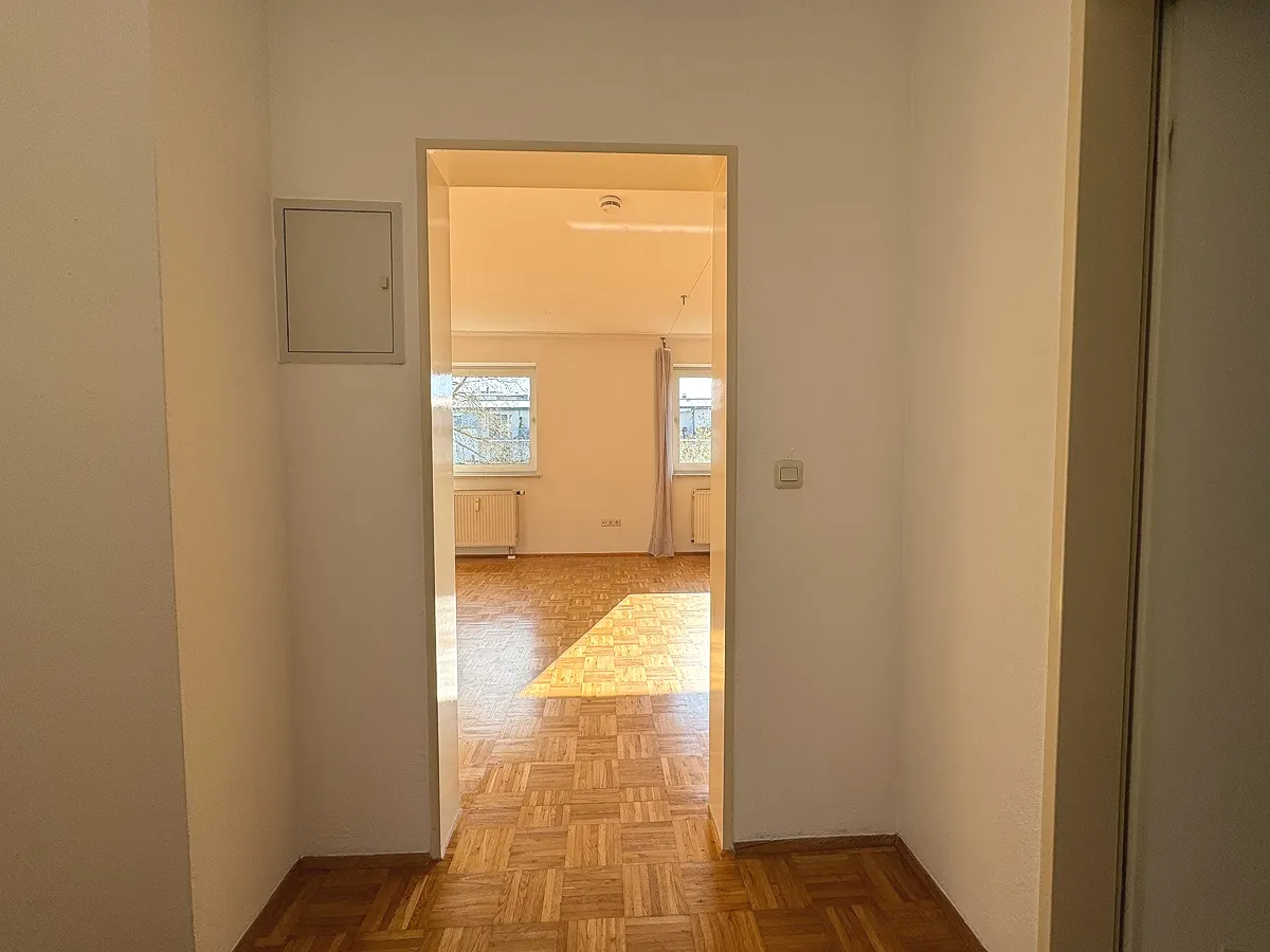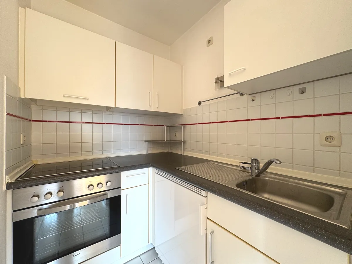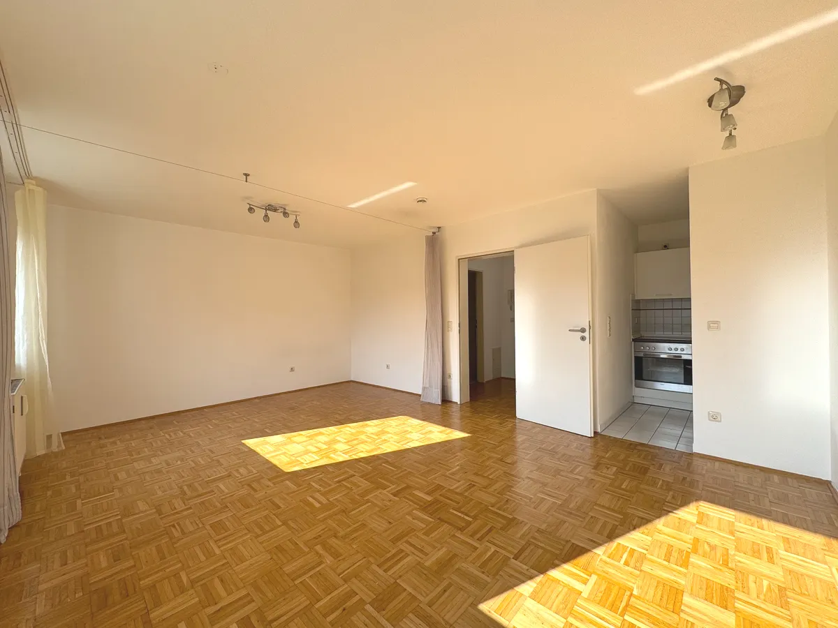 Auf ca. 33 m² erwartet Sie ein heller Wohnbereich mit edlem Parkettboden und eine praktische Einbauküche. Ein neuer Einbauschrank im Flur bietet Ihnen bereits wertvollen Stauraum.