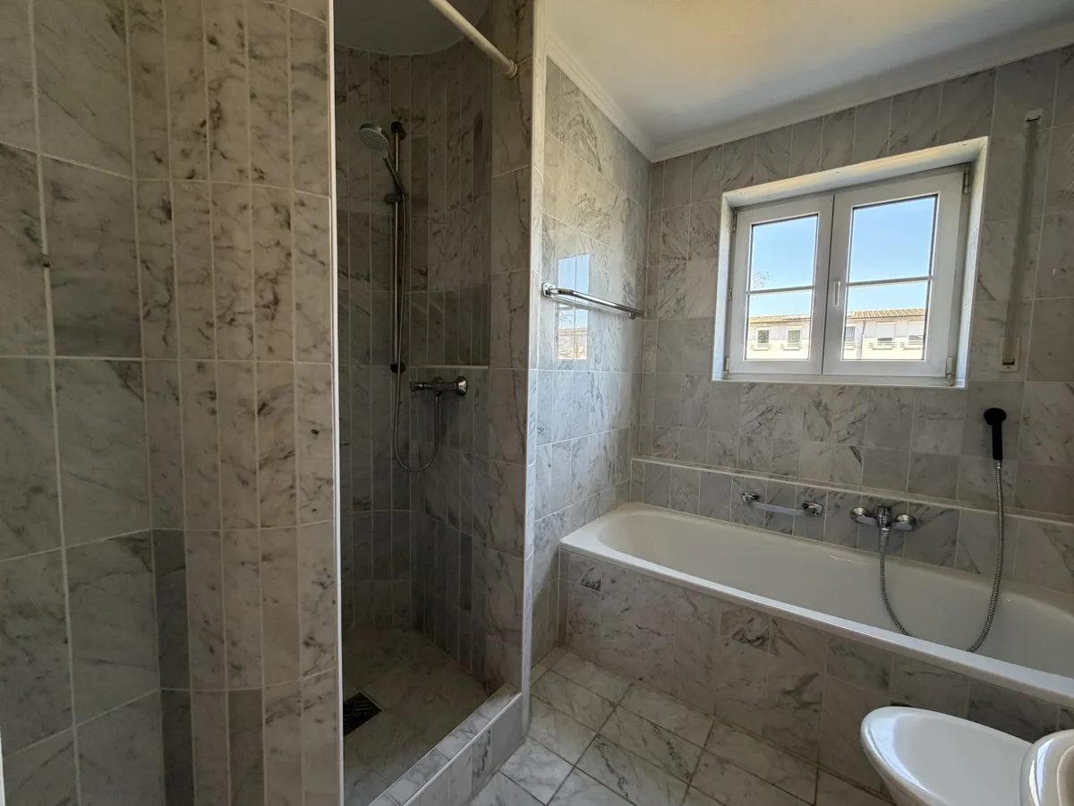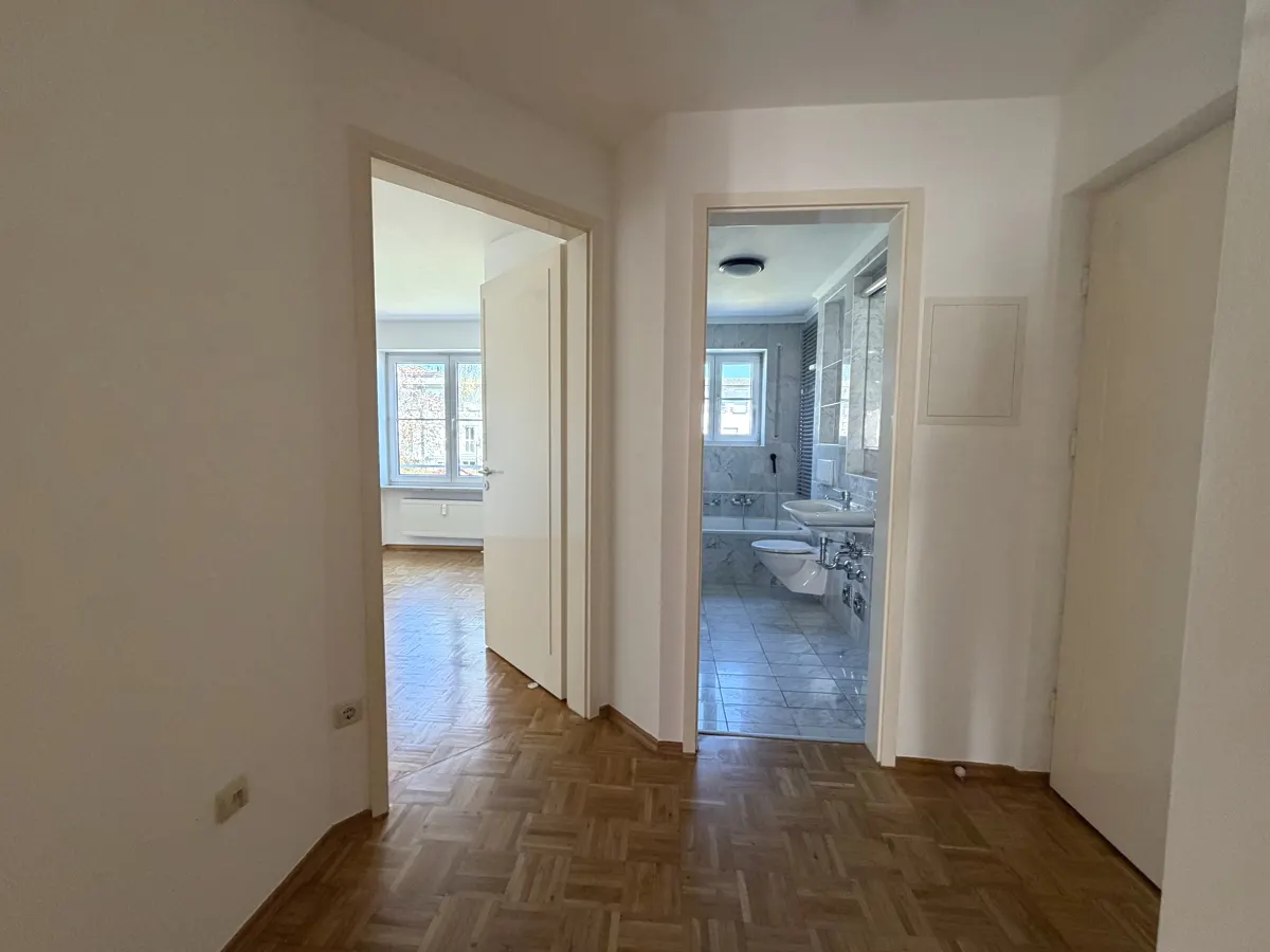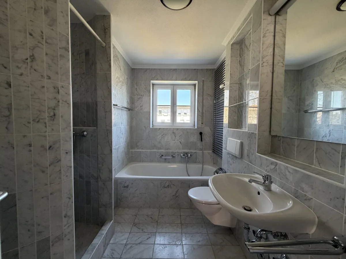 Die Wohnung ist edel ausgestattet. Weiß lackierte Designertüren, beheizbarer Handtuchhalter, elegantes Tageslicht - Marmorbad mit rund gemauerter Dusche und Badewanne. Alle Zimmer haben Parkettfußboden die restlichen Räume Marmor. Das Schlafzimmer ist hell und freundlich, der Wohn-Essbereich mit Zugang auf den großen Balkon liegt in Südwest Ausrichtung. Hier können Sie die Sonne ab Mittag bis zum Abend genießen. Praktisch finden wir den separaten Abstellraum.