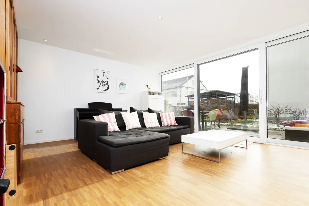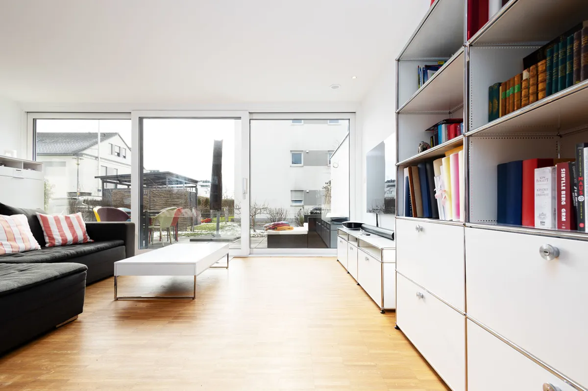 Dieses moderne und energieeffiziente Stadthaus bietet Familien viel Spiel- und Lebensraum auf ca. 135 m² Wohnfläche. Ideal platziert in einem familiengerechten Umfeld.