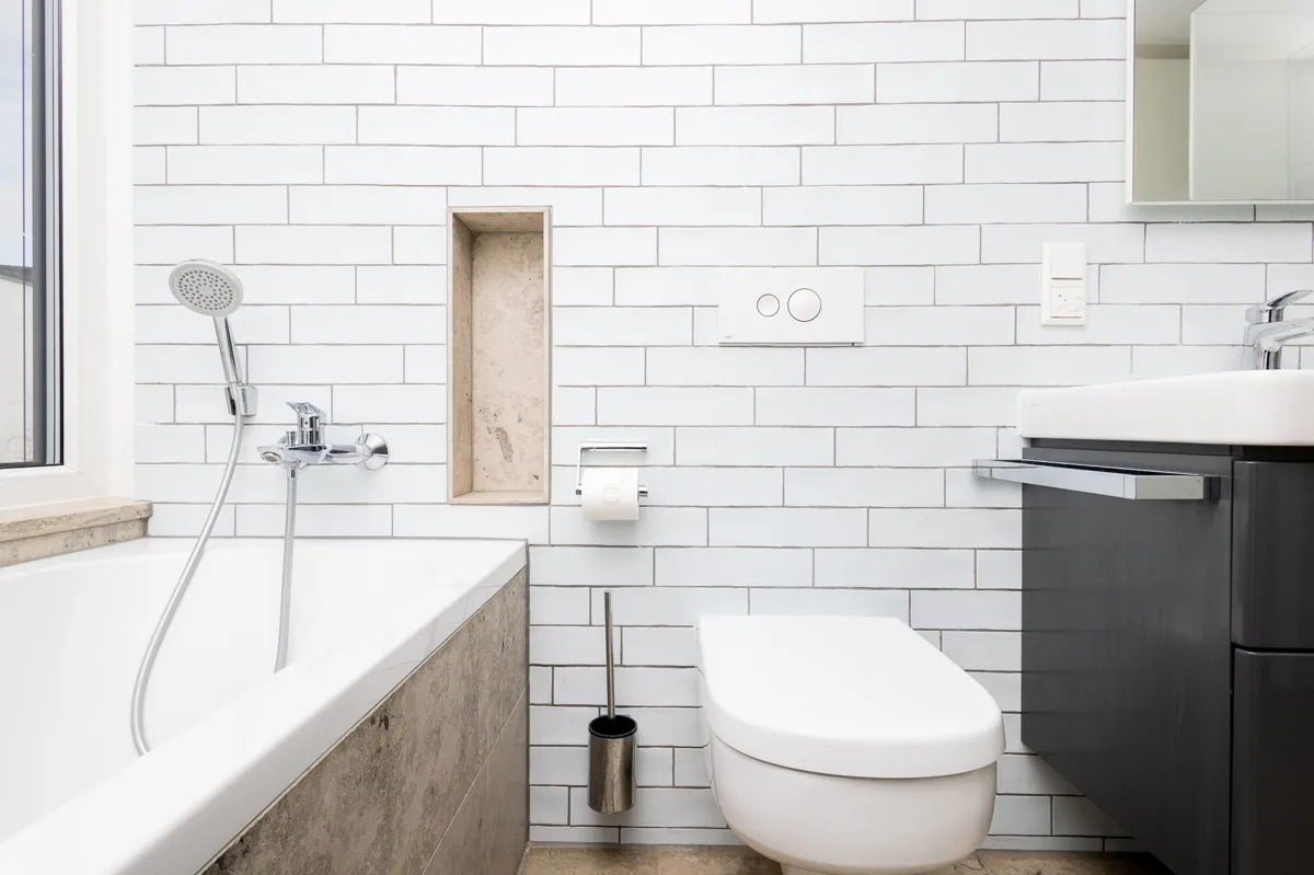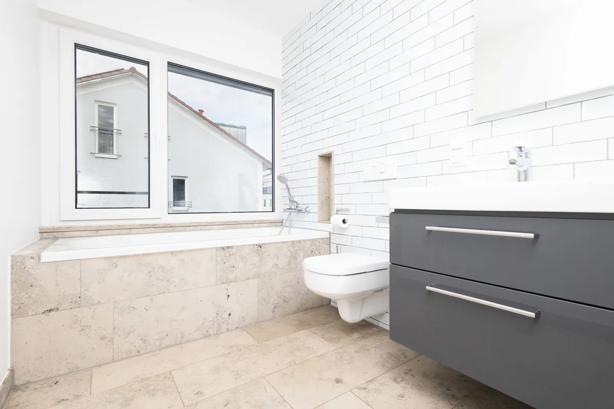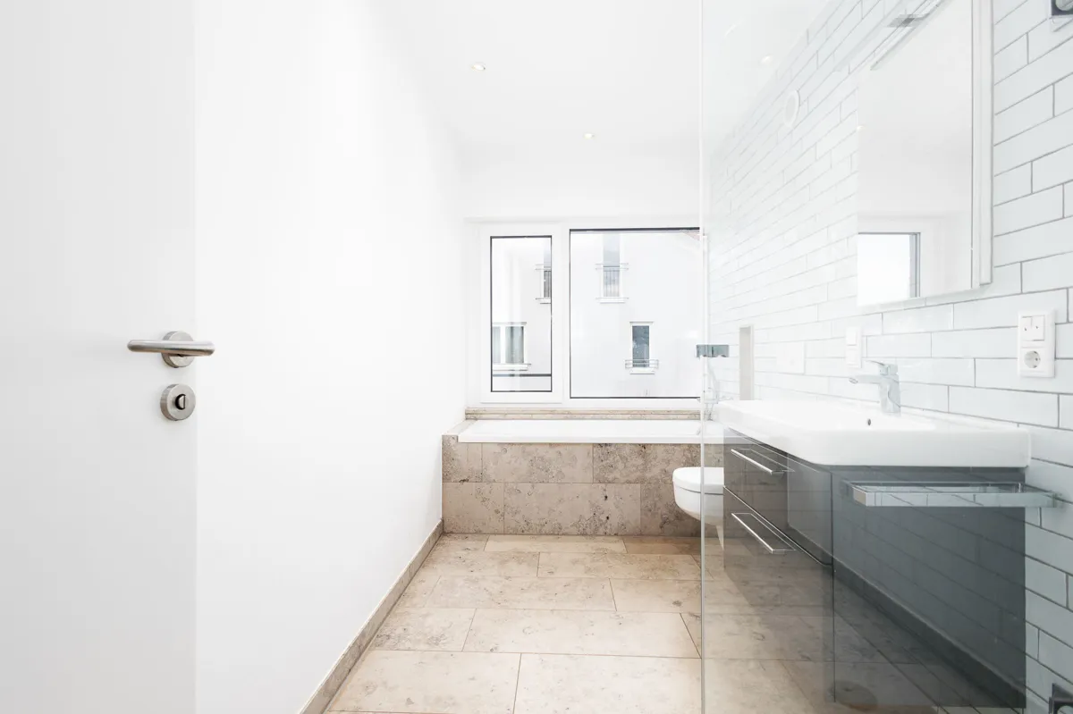 | Bad mit Dusche, Wanne, Fenster |