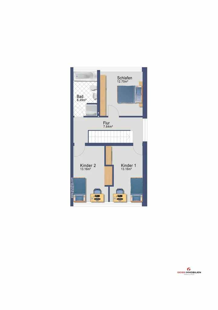 Hier findet jedes Familienmitglied in einem der 3 großzügigen Zimmer seinen Rückzugsbereich - sowie ein gemeinsames Tageslichtbad, das durch seine Größe allen gerecht wird.