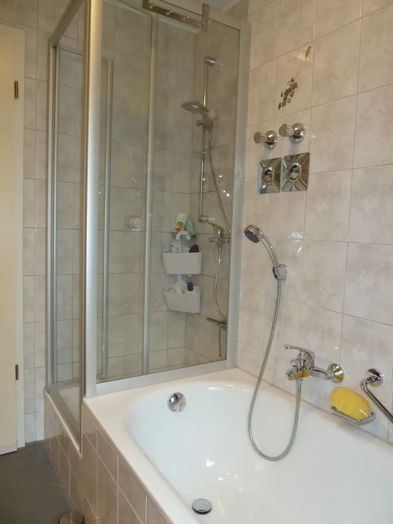| Bad mit Dusche, Wanne, Fenster |